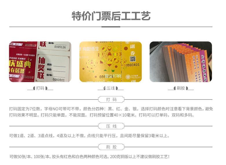 济南印刷门票后工工艺-压点线 刷胶 烫金