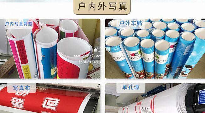 喷画喷绘产品包括: 户内:相纸、背胶、灯片、可移背胶,PP胶,PVC片,防水白花布、透明背胶/透明片、写真布、银绸布、丝光绢布、 油画布、金泊、银泊等; 户外:外/内打灯布、户外背胶、车身贴,单透贴、网格布、户外灯片,双面布,地板贴,旗纺布等; 展示器材有:展板(KT板,裱画板,安迪板,雪弗板,纸面板,太阳板,万通板等板材),X展架、韩式X展架,易拉宝、伸缩杆易拉宝、拉 网展架、促销台、L形展架、人像立牌、海报架,迷你X展架,迷你易拉宝等
