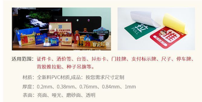 1、背胶:0.76厚度以下背胶可模切,效果好、速度快,收费合理。0.76以上只能手工背胶,效果差,有毛边,收费高,速度慢。背胶可做双面印,单面背胶,如推拉贴。