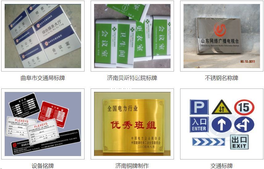 山东皆企奖牌印刷公司制作的各类标识导向系统产品大类包括:交通标识牌,安全标识牌,产品标识牌,汽车4店标识标牌,医院标识牌,公共标牌,警示牌,禁止标识牌,消防标识牌,禁止吸烟标识牌,道路标牌,企业标牌,广告标识,形象标识牌,标志标识,环保标识标牌,科室标牌,酒店标识牌,公园标识系统,反光标牌,地产标识系统,金融机构标识牌,电力标牌定做,公安系统标识牌