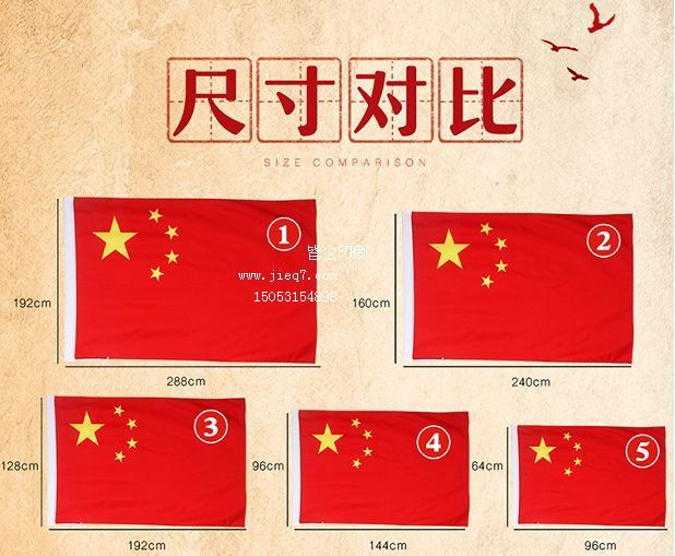 5号旗帜长96厘米,高64厘米。