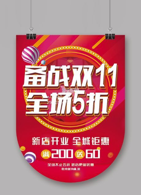 商场吊旗/吊幔商场吊旗分为三种,一类是商场中庭的吊幔(吊幔:指的是竖长条的大吊旗),另一类是商场中庭扶手侧挂的吊旗,最后是商场过道悬挂的吊旗;吊幔尺寸经常用到以下规格(宽m*高m):1*5、1*8、 1*10、*12、1.2*8、1.2*10、1.2*12、1.2*15、1.5*10、1.5*12、1.5*15;扶手吊旗尺寸(宽cm*高cm):50*150、60*150、60*160;商场过道吊旗尺寸(宽cm*高cm):60*40、80*40、90*60、100*50、100*60,